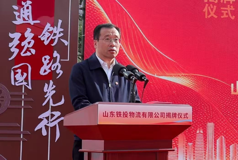 中國鐵路濟南局集團有限公司總調(diào)度長張躋棟在致辭中表示,山東鐵投物流有限公司的成立是山東鐵路發(fā)展進程中的一件大事,也是推動全省物流體系優(yōu)化升級的重要舉措。濟南局將全力支持山東鐵投物流有限公司在運輸組織、運力保障、信息互通、業(yè)務協(xié)同等方面的發(fā)展,共同打造路省合作、互利共贏的典范,攜手拓展班列開行、倉儲配送、供應鏈服務等領(lǐng)域,為服務山東乃至全國經(jīng)濟社會發(fā)展大局貢獻力量。