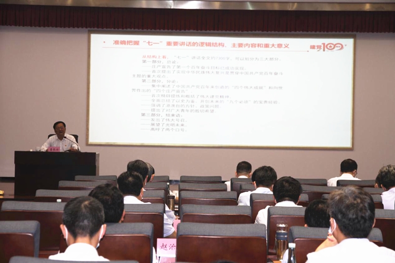 姜長興結(jié)合個人所學(xué)所聞、所思所悟,深入解讀了習(xí)近平總書記“七一”重要講話的邏輯結(jié)構(gòu)、主要內(nèi)容和重大意義,詳細闡釋了講話中提出的一系列新思想新觀點新論斷,重點闡述了中國共產(chǎn)黨百年來創(chuàng)造的“四個偉大成就”和向世界作出的“四個莊嚴宣告”。大家邊聽邊思考,進一步加深了對習(xí)近平總書記“七一”重要講話精神的理解,感悟了思想、鼓舞了斗志、汲取了力量,增強了“四個意識”、堅定了“四個自信”。