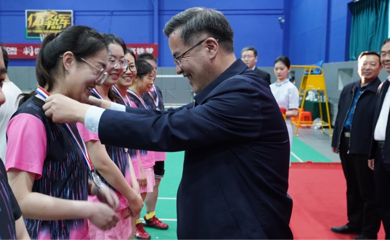 高燕在閉幕式上講話,向取得優(yōu)異成績的代表隊表示祝賀,向所有運動員的奮勇拼搏、裁判員的公正評判、大賽組委會的精心組織、籌備組工作人員的默默奉獻表示贊揚和慰問。她強調(diào),本屆羽毛球比賽是今年集團舉辦的第一場大型群眾性文體活動,各代表隊在比賽期間充分發(fā)揚“頑強拼搏、團結協(xié)作”的運動精神,賽出了水平,更賽出了風格,充分展示了鐵投人朝氣蓬勃、昂揚向上的精神風貌。希望大家在今后的工作和生活中,繼續(xù)發(fā)揚拼搏精神,以飽滿的熱情、昂揚的斗志,為集團高質(zhì)量發(fā)展努力奮斗!隨后,高燕、竇玉碩等領導向各代表隊頒發(fā)了獎牌和獎杯,并與大家合影留念。