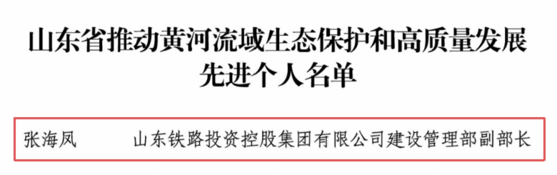 近日,省發(fā)展改革委開展了山東省推動(dòng)黃河流域生態(tài)保護(hù)和高質(zhì)量發(fā)展優(yōu)秀范例和先進(jìn)典型評(píng)選工作,山東鐵投集團(tuán)建設(shè)管理部副部長(zhǎng)張海鳳榮獲先進(jìn)個(gè)人。