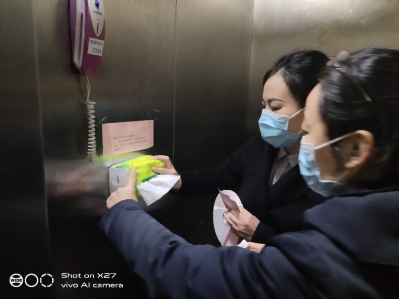 此后,每到下班后或周末,她都會與社區(qū)工作人員一起參與疫情防控:在居民進出小區(qū)高峰時段協(xié)助測溫登記,降低人員聚集風險;看到有下樓買菜的老人戴的還是布料口罩,或是聽小區(qū)門口執(zhí)勤的安保人員說已經(jīng)幾天未還新口罩了,就及時送上自己買到的醫(yī)用口罩;她還從單位學習好的經(jīng)驗做法,仿照山東鐵投大廈電梯廳內的防控措施,在小區(qū)內部電梯里貼上了抽紙,幫助鄰居們避免接觸感染。
