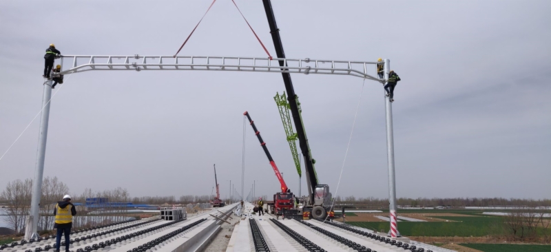 隨著疫情防控形勢的明顯好轉(zhuǎn),國家及山東省發(fā)出了關(guān)于國家重點(diǎn)建設(shè)項(xiàng)目、重點(diǎn)基礎(chǔ)交通設(shè)施項(xiàng)目加快復(fù)工復(fù)產(chǎn)的號召。承擔(dān)濰萊高鐵“四電”工程任務(wù)的中鐵武漢電氣化局集團(tuán)濰萊高鐵項(xiàng)目部,提前組建接觸網(wǎng)作業(yè)隊(duì),制定詳細(xì)的施工方案及安全應(yīng)急預(yù)案,正式施工前進(jìn)行了2次硬橫梁起、運(yùn)、吊裝演練。3月27日上午開工前,技術(shù)、安質(zhì)部門現(xiàn)場對施工人員進(jìn)行技術(shù)交底,確保了第一組硬橫梁一次性安裝成功、施工安全。監(jiān)理單位、施工單位相關(guān)負(fù)責(zé)人參加了全線首組硬橫梁的安裝。截至當(dāng)天15時(shí),濰萊高鐵王伯村線路所4組接觸網(wǎng)硬橫全部安裝完成。