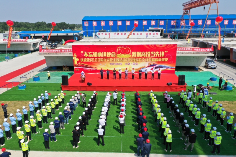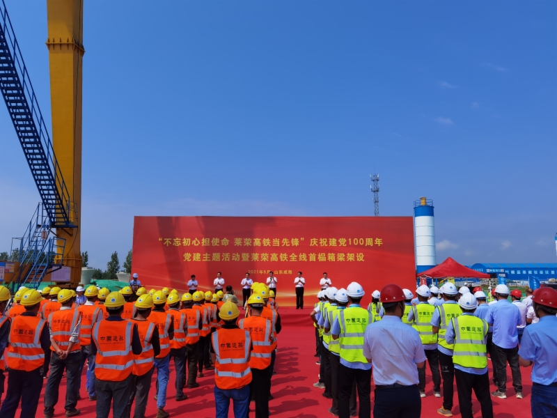 6月26日,山東重點(diǎn)鐵路工程項(xiàng)目濰煙高鐵、萊榮高鐵在煙臺和威海兩地同時(shí)舉行慶祝建黨100周年黨建主題活動(dòng)暨首榀箱梁架設(shè)活動(dòng)。