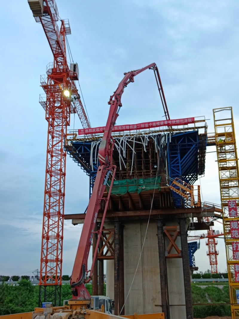 8月5日,濰煙鐵路龍家廟村王河特大橋跨疏港高速連續(xù)梁零號塊順利澆筑。