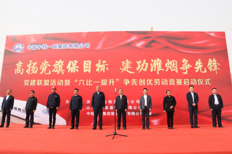 儀式上,集團工會主席張慶星在講話中對中鐵一局濰煙4標的工作給予了肯定,希望濰煙4標以此次勞動競賽為契機,再接再厲,進一步強化安全質量管理,細化工程節(jié)點目標,切實做到干在實處、走在前列,以黨建為統(tǒng)領,以勞動競賽為抓手,發(fā)揮央企標桿作用,以高質量黨建促進濰煙高鐵高質高效建設。