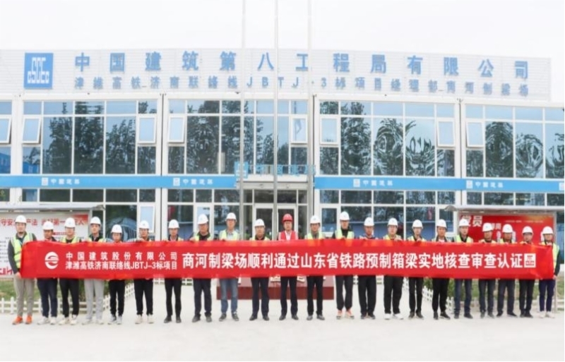 4月20日,濟濱高鐵(津濰高鐵濟南聯(lián)絡線)商河、濟陽制梁場一次性通過國家生產(chǎn)許可證實地核查,全面完成預應力鐵路簡支梁生產(chǎn)許可取證工作,中建股份JBTJ-3標項目經(jīng)理部成為全線首家完成國家級生產(chǎn)許可取證的標段,標志著該梁場正式具備批量生產(chǎn)條件,為后續(xù)箱梁供應奠定堅實基礎。