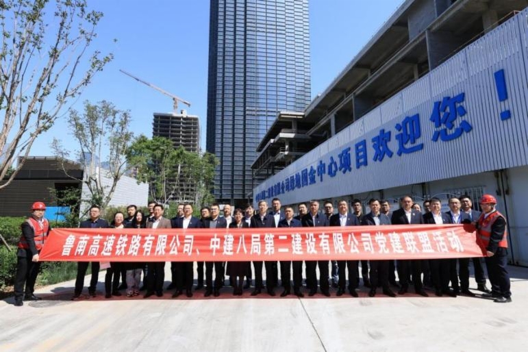 4月26日,魯南高鐵公司組織黨員來到綠地山東國際金融中心項目建設(shè)現(xiàn)場,與中建八局二公司共同開展了黨建共建暨“登齊魯之巔,懷赤色匠心,做魯南尖兵”主題黨日活動。魯南高鐵公司黨委副書記、總經(jīng)理孫韶峰,黨委副書記、監(jiān)事會主席、工會主席王清村;中建八局山東分局副局長靳慶玉,二公司副總經(jīng)理苑玉振,黨委副書記、工會主席張慧,基礎(chǔ)設(shè)施公司黨總支書記、總經(jīng)理呂士東,山東公司黨總支副書記、執(zhí)行總經(jīng)理高騰等參加活動。