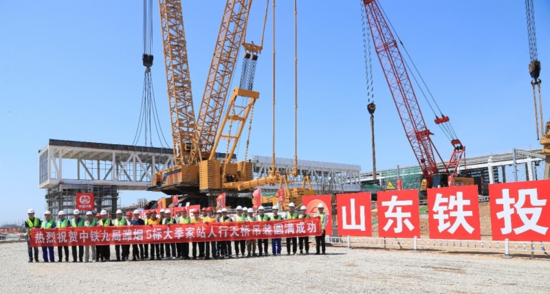 6月22日下午,隨著最后一節(jié)長43米、重385.9噸的鋼桁架旅客天橋平穩(wěn)落定,由山東鐵投集團濰煙高鐵公司投資建設(shè)的濰煙高鐵煙臺西站旅客天橋營業(yè)線施工吊裝作業(yè)順利完成,實現(xiàn)了濰煙高鐵站臺和龍煙鐵路市域化站臺旅客通道的連通,標志著煙臺西站站場、站房施工基本完成,工程進入沖刺收官階段。