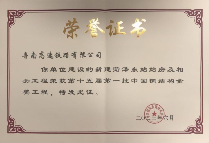 近日,魯南高鐵菏澤東站,榮獲“第十五屆第一批中國鋼結(jié)構(gòu)金獎”。