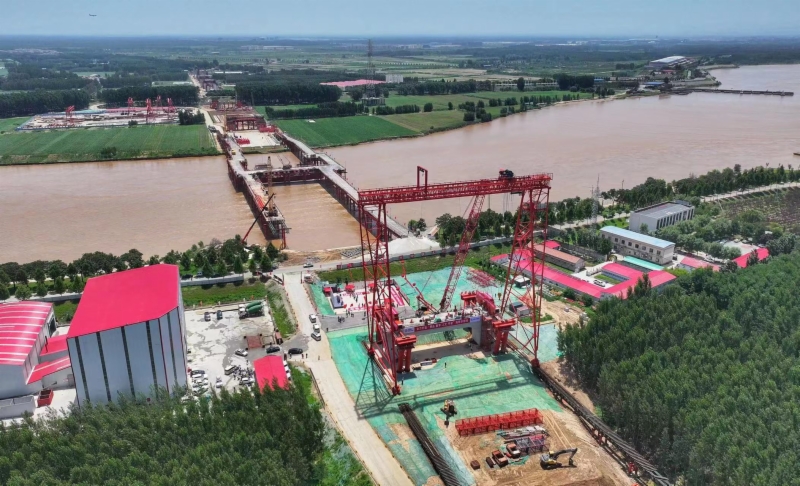 當前,黃河已進入主汛期,且正值上游小浪底水庫調(diào)水調(diào)沙,橋位處水位高、流速大,最大流量超3900立方米/秒。在鋼梁架設過程中,面對汛期對現(xiàn)場施工管理的影響,參建單位努力克服高溫天氣、施工空間有限、施工工藝復雜等難點,現(xiàn)場通過智能監(jiān)控、自動預警及數(shù)字化控制,實時監(jiān)測主梁拼裝線型、輔助設施受力和大型起吊設備安全狀態(tài),實現(xiàn)鋼梁精準、安全、高效吊裝架設。