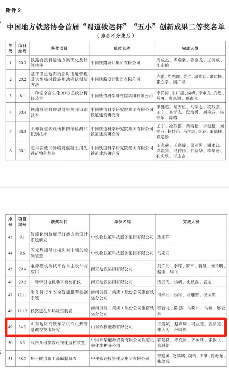 近日,山東鐵投能源公司打造的山東地區(qū)高鐵車站供冷供熱智慧調(diào)控技術(shù)研究項(xiàng)目獲得中國(guó)地方鐵路協(xié)會(huì)首屆“蜀道鐵運(yùn)杯”“五小”創(chuàng)新成果二等獎(jiǎng),集團(tuán)在科技創(chuàng)新應(yīng)用方面再添新成果。