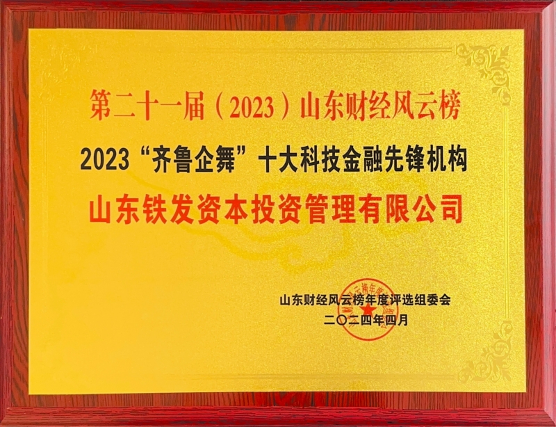 4月28日,由大眾報(bào)業(yè)集團(tuán)(大眾日報(bào)社)主辦,山東財(cái)經(jīng)大學(xué)、山東省宏觀經(jīng)濟(jì)研究院、山東省互聯(lián)網(wǎng)傳媒集團(tuán)、《經(jīng)濟(jì)導(dǎo)報(bào)》社聯(lián)合承辦的“第二十一屆(2023)山東財(cái)經(jīng)風(fēng)云榜”發(fā)布,山東鐵發(fā)資本投資管理有限公司榮膺“2023‘齊魯企舞’十大科技金融先鋒機(jī)構(gòu)”。