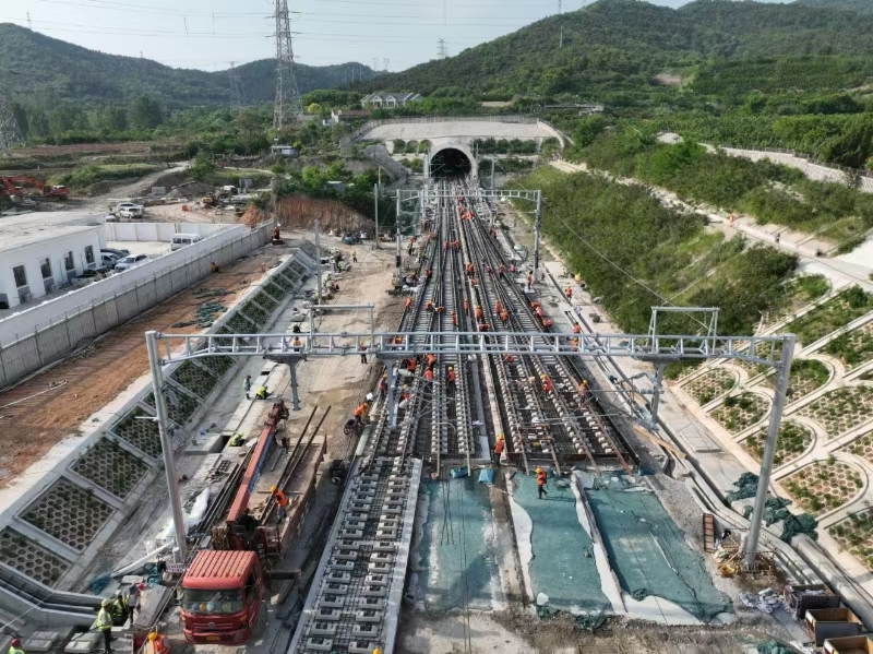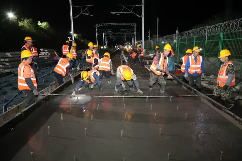 目前,本次施工部分項(xiàng)目已進(jìn)入調(diào)試和調(diào)整階段并即將啟動(dòng)驗(yàn)收。其中軌道工程正進(jìn)行補(bǔ)砟、應(yīng)力放散、大機(jī)搗鼓作業(yè);四電工程正在進(jìn)行接觸網(wǎng)架設(shè)、精調(diào)及通信、信號(hào)、電力、信息客服設(shè)備設(shè)施調(diào)試;站場(chǎng)工程已進(jìn)入竣工清理工作。