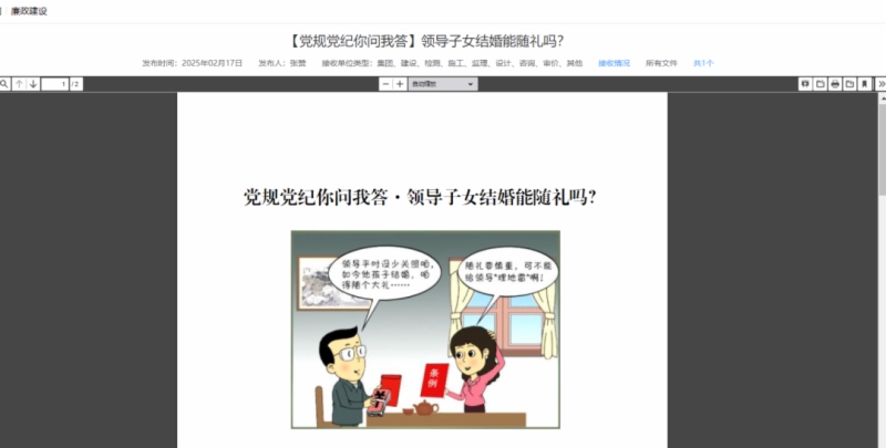 數(shù)智教育“隨身行”。利用高鐵智能建造BIM平臺建設(shè)“掌上廉潔站”,集成工程領(lǐng)域違紀(jì)違法案例庫、廉潔風(fēng)險防控提示等內(nèi)容,開通“廉潔微課”推送功能,實現(xiàn)工歇時段“見縫插針”式教育。平臺日均訪問量千余次,覆蓋100%參建人員。